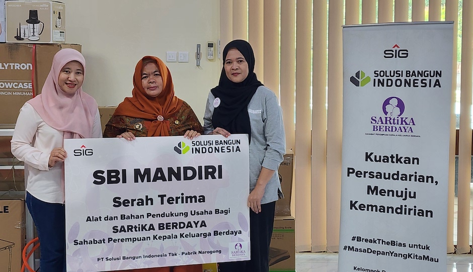 Klapanunggal, SuaraBotim.Com – Demi mendorong kemandirian ekonomi masyarakat di sekitar wilayah operasionalnya, PT Solusi Bangun Indonesia Tbk (SBI) Pabrik Narogong, anak usaha SIG, memberikan bantuan khusus untuk pengembangan usaha kepada 50 anggota kelompok SARtiKA Berdaya. Kelompok yang berfokus pada pemberdayaan perempuan kepala keluarga korban rentenir ini diharapkan dapat memanfaatkan bantuan tersebut untuk meningkatkan kualitas produk, memperluas skala usaha, dan mencapai pertumbuhan omset yang berkelanjutan.