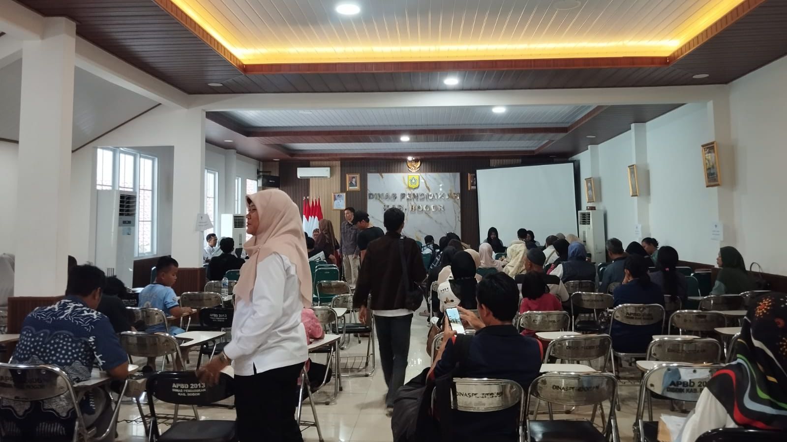 Ia datang ke kantor Dinas Pendidikan Kabupaten Bogor untuk melakukan registrasi ulang setelah gagal login, karena tidak mendapat username saat mendaftar online.
