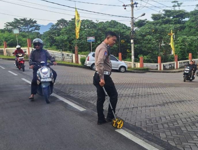 Anggota Gakkum Satlantas Polres Bogor lakukan olah TKP kecelakaan tunggal di Cilebut. (Foto: Pandu)